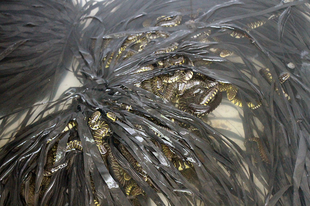 “Rắn giống từ 15 đến 30 ngày tuổi, tôi mới xuất bán với giá 90.000 đồng/con. Năm trước tôi bán hơn 1.000 con rắn con, dự kiến năm nay bán từ 1.400-1.600 con”, anh Thanh chia. Người mua rắn giống của anh ở khắp các tỉnh miền Tây.