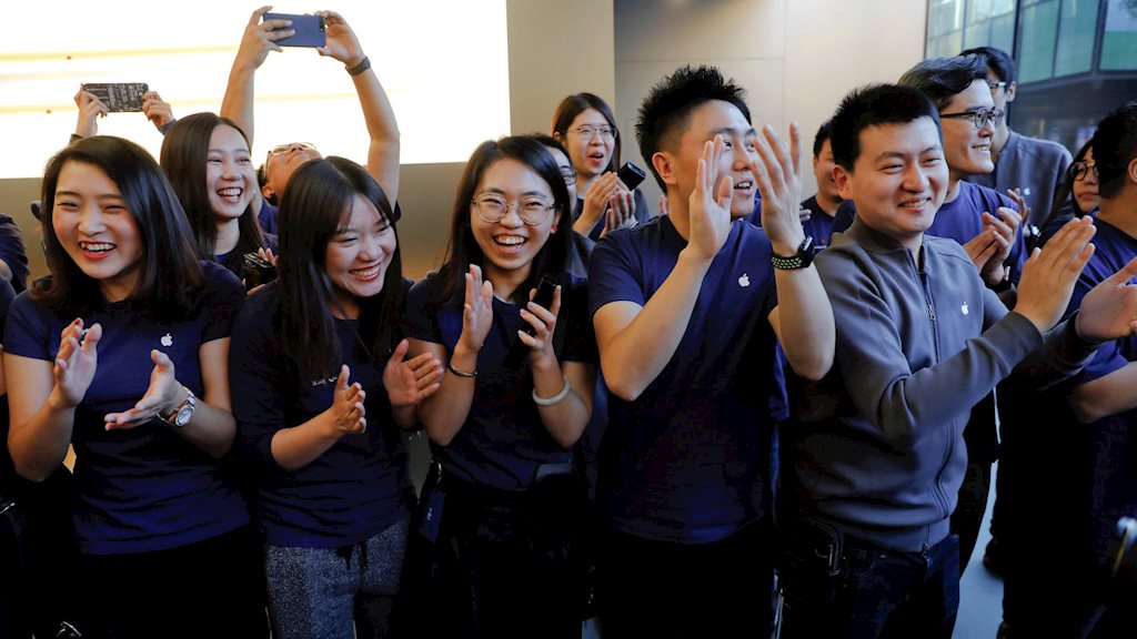 Nhân viên Apple Store Bắc Kinh. Ảnh: Reuters |