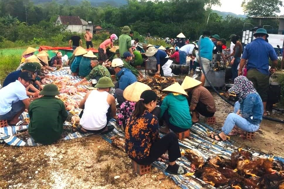 "Nhận được tin báo, chúng tôi đã huy động lực lượng cán bộ xã, người dân đến làm thịt số gà chết, kêu gọi bà con ủng hộ, tiêu thụ bớt để giúp anh Xuân vớt vát tài sản", ông Lễ nói.