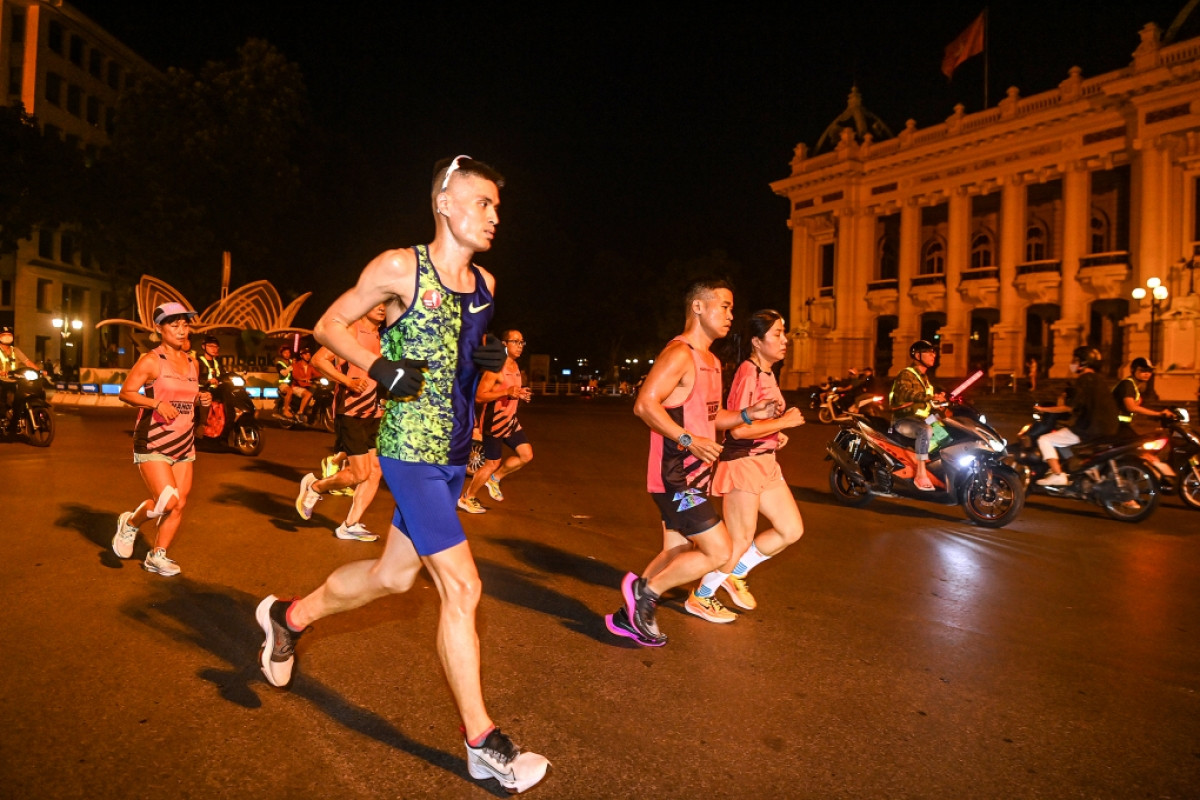 Xuất phát tại khu vực hồ Hoàn Kiếm, các VĐV tham gia VNExpress Marathon Hanoi Midnight được sải bước trên các cung đường mang dấu ấn lịch sử qua hàng loạt di tích thắng cảnh nổi tiếng của Thủ đô như Hoàng thành Thăng Long, Cột cờ Hà Nội, Lăng Chủ tịch Hồ Chí Minh...
