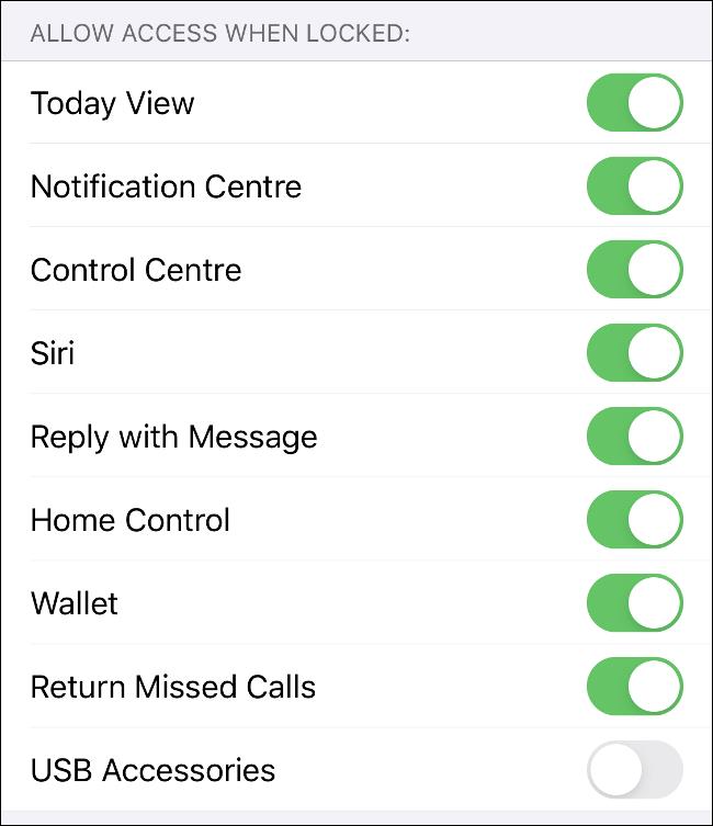 Do việc mở khoá iPhone, iPad của bạn quá dễ dàng (đối với bản thân bạn, thông qua các phương thức sinh trắc), nên việc hiển thị quá nhiều thông tin, thông báo trên màn hình khoá để dễ truy cập cũng không còn cần thiết nữa và cũng không giúp tiết kiệm được bao nhiêu thời gian. Do đó, để thay đổi các thiết lập hiển thị trên màn hình khoá của bạn, mở ứng dụng Cài đặt (Settings) > Face ID & Passcode (Face ID & Mật mã (hoặc Touch ID & Passcode (Touch ID & Mật mã), nếu máy bạn là iPhone 8/8 Plus trở về trước) và vô hiệu hoá các dịch vụ mà bạn không muốn hiển thị và truy cập được từ màn hình khoá.