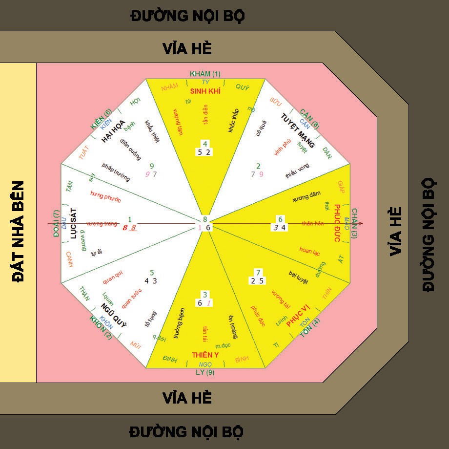 Như vậy, hai cửa của biệt thự này đều tốt theo phong thủy, kể cả theo trường phái Bát trạch lẫn Huyền không và được tính trên phong thủy Loan đầu…