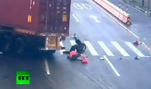 Ô tô lao xuyên qua giữa hai cô gái