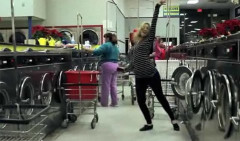 Màn nhảy bốc lửa của cô gái trong tiệm giặt