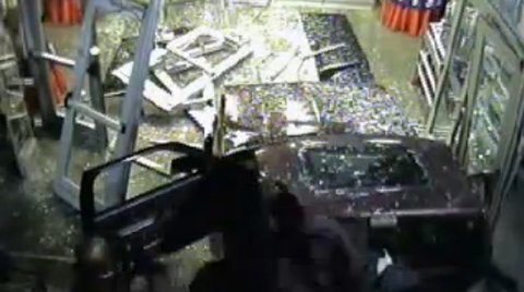 Lùi hẳn xe tải vào cướp đồ trong cửa hàng