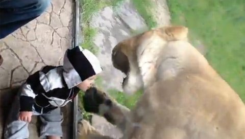 Con sư tử cào cấu tìm cách ăn thịt em bé