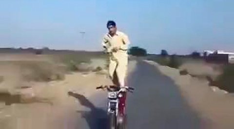 Đứng trên yên lái xe máy vù vù