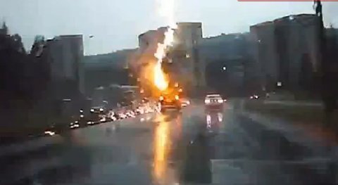 Ô tô bị sét đánh cháy trên đường