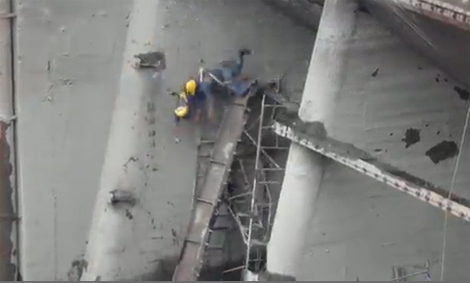 Hai công nhân may mắn thoát chết vì có dây an toàn