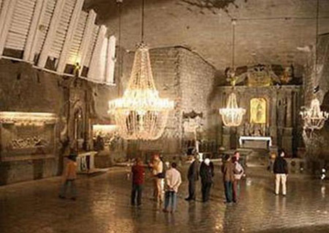 Mỏ muối Wieliczka đã được người dân địa phương đưa vào khai thác từ thế kỷ 13. Muối kết tinh là thứ nguyên liệu chính được dùng để trang hoàng cho các viện bảo tàng, phòng hòa nhạc và spa tại đây.