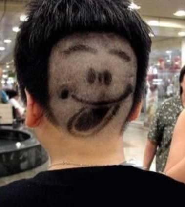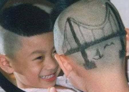 Cậu bé thích thú với tóc được tỉa thành hình cây cầu |