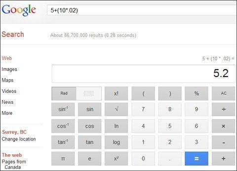Bạn có thể dùng Google như một chiếc máy tính. Chỉ cần gõ một phép tính nhanh và Google sẽ cung cấp cho bạn câu trả lời ngay lập tức. Giờ đây, Google còn cung cấp công cụ bảng tính có thể bấm vào để thực hiện các phép tính, vì thế bạn có thể dùng Google như một ứng dụng tính toán trên PC hay smartphone.