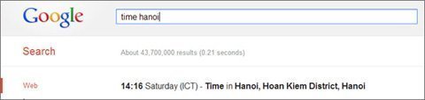 Và tương tự, nếu chỉ gõ "time", Google sẽ cho bạn biết giờ tại nơi bạn đang sống.