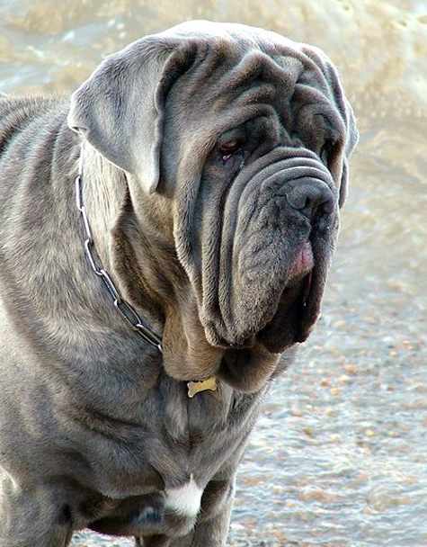 Cơ thể khổng lồ dị thường của chó Neapolitan Mastiff trung bình nặng tới 70 kg và cao 0,8 mét. Thật dễ liên tưởng giống chó này với chú chó Fang trong căn chòi của lão Hagrid ở khu Rừng cấm trong phim Harry Potter.