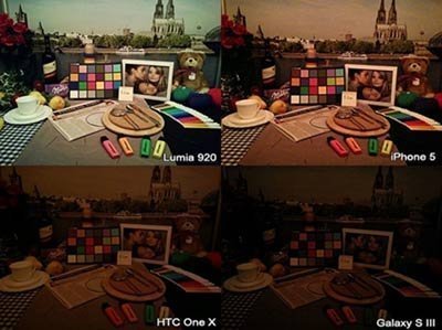 | Ảnh chụp từ các dòng điện thoại khác nhau, trong cùng điều kiện ánh sáng. Lumia 920 cho hình ảnh có độ nhạy sáng rất ấn tượng |