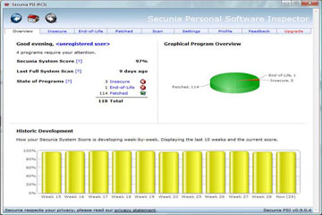 Một ứng dụng bảo mật miễn phí được phát hành bởi Secunia có thể giúp bạn an toàn trong truy cập mạng. Secunia Personal Software Inspector, hiện được cung cấp miễn phí, có thể thực hiện hành vi quét các phần mềm đã cài đặt để xem chương trình nào không được cập nhật. Tuy nhiên nó không chỉ dừng lại ở đây – với mỗi một chương trình “quá hạn” mà chương trình này tìm được, nó sẽ cung cấp các nút nhằm giải quyết nhanh chóng và dễ dàng, ví dụ như nút Download Solution, đây là nút nhận bản vá phần mềm mà bạn không cần phải mở trình duyệt.