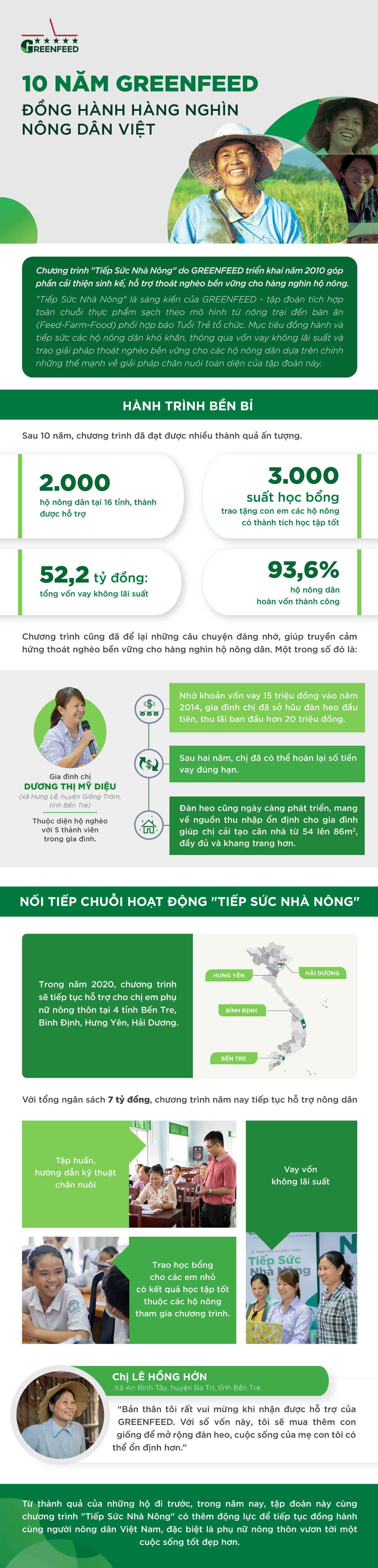 Chương trình “Tiếp sức nhà nông” do GreenFeed triển khai từ năm 2010 góp phần cải thiện sinh kế, hỗ trợ thoát nghèo bền vững cho hàng nghìn hộ nông.