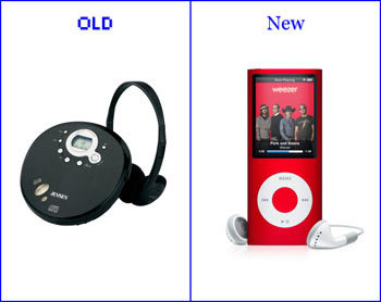 Chỉ với một chiếc máy nghe nhạc MP3 nhỏ, gọn, thời trang, bạn đã có thể lưu hàng trăm bài hát. Vì vậy, chiếc máy nghe nhạc chạy đĩa CD xách tay với pin chỉ được vài tiếng đương nhiên trở thành “nạn nhân” của công nghệ.