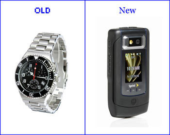 Trong thập kỷ qua, ĐTDĐ đã đe dọa sẽ cướp mất một trong những món đồ trang sức hữu ích nhất của loài người. Đó là chiếc đồng hồ đeo tay. Ngay từ những năm cuối thập kỷ 90, nhiều người đã thích thú thốt lên rằng họ mang theo ĐTDĐ và luôn luôn biết chính xác thời gian, mà không bao giờ phải cài đặt lại, hay lên dây cót, hay thay pin.