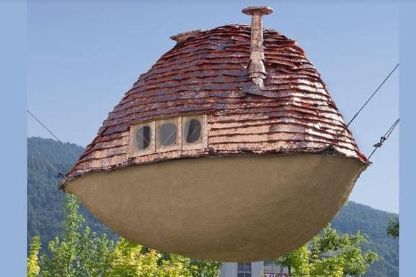 Nhà bay bằng bùn tại Nhật: Sống trên căn nhà này bạn sẽ có cảm giác mình đang bay trên không trung như một phi thuyền lơ lửng, bởi ngôi nhà đặc biệt này được neo móc bởi bốn sợi dây cáp chắc chắn.