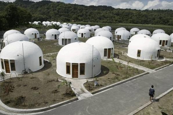 70 ngôi nhà mái vòm này được xây dựng cho dân làng bị mất nhà cửa sau một trận động đất ở thành phố cổ Yogyakarta của Indonesia. Các mái vòm được làm bằng đá nguyên khối và có thể chịu được động đất và gió lên đến 190 mph.