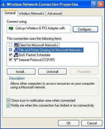 Các chức năng chia sẻ file của Windows cũng nên vô hiệu hóa khi có chuyến đi xa. Để thực hiện thao tác này, cần truy cập vào bảng Properties của Wireless Connection và bỏ dấu chọn ở cả hai mục Client for Microsoft Networks và File and Printer Sharing for Microsoft Networks.