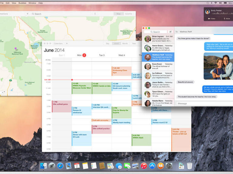 Hiện đang được gọi với tên mã Yosemite, hệ điều hành máy tính tiếp theo của Apple sẽ vay mượn thiết kế phẳng của phiên bản iOS hiện tại, đồng thời cải thiện các tính năng giúp các máy Mac, iPhone và iPad tương tác với nhau tốt hơn. Dự kiến các máy Mac sẽ được nâng cấp miễn phí lên hệ điều hành này vào nửa cuối năm nay.