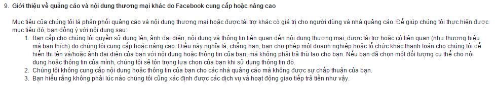 Xin lỗi, những dòng chữ trên chỉ rõ sự thiếu hiểu biết của bạn. Khi đăng ký sử dụng Facebook, lúc nào họ cũng yêu cầu bạn chấp thuận Điều khoản và Điều kiện mà bạn phải tuân theo khi dùng Facebook.