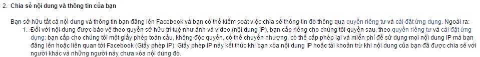 Quan điểm thứ hai có vẻ hợp lý hơn, bởi trong điều khoản và điều kiện sử dụng của Facebook có ghi rõ như sau: