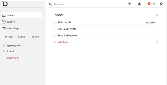 Được tối ưu dành cho HTML5, Todoistlà ứng dụng quản lý công việc có thiết kế đẹp, dễ sử dụng với nhiều tính năng mạnh mẽ. Tuy rằng phiên bản miễn phí là tương đối đủ đối với giới học sinh, sinh viên nhưng nếu cần sử dụng các tính năng cao cấp của Todoist như tạo bộ lọc, tạo nhãn nâng cao, thêm tệp đính kèm vào một mẩu ghi chú..., bạn sẽ phải trả một khoản phí là 30 USD/năm.