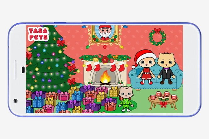 Ứng dụng kết hợp các chú mèo với Giáng sinh sẽ giúp những đứa trẻ của bạn không thể rời mắt. Yasa Pets Christmas là một ngôi nhà đồ chơi trên điện thoại giúp con bạn chạm vào và khám phá gia đình nhà mèo vào ngày Noel. Bạn có thể mở quà, “diện” cho mèo, sắp đặt bàn tiệc…