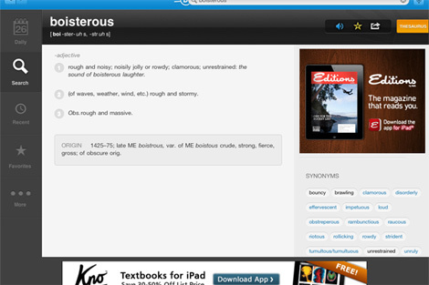 Ứng dụng Dictionary app của Dictionary.com cung cấp gần như mọi khái niệm cần tra cứu từ các từ đồng nghĩa cho đến các từ nguyên của một từ. Ứng dụng này cực kỳ dễ dùng và còn có một số tính năng thú vị khác như “Câu hỏi trong ngày” giúp tránh các rủi ro nhầm lẫn khái niệm.