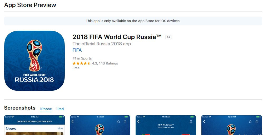 Đây sẽ là ứng dụng cập nhật những thông tin quan trọng nhất chỉ riêng về World Cup 2018 diễn ra tại Nga. Ngoài hiển thị những thông tin về trận đấu, sẽ có các tin tức liên quan đến thực tế như các sự kiện, báo cáo về độc quyền, các cuộc phỏng vấn cho người hâm mộ tại từng thành phố của Nga.