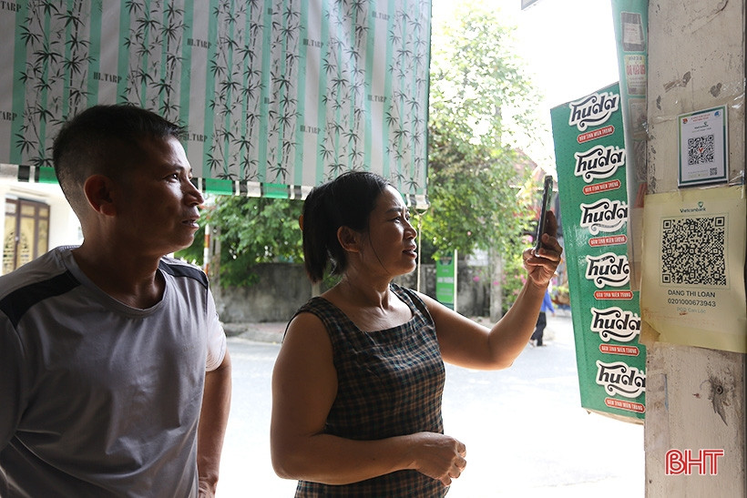 Bên cạnh đó, các quán ăn, cửa hàng tạp hóa trên địa bàn thôn đều đã trang bị bảng quét mã QR. Người mua hàng thay vì dùng tiền mặt chỉ cần quét mã qua điện thoại là có thể thanh toán chi phí.