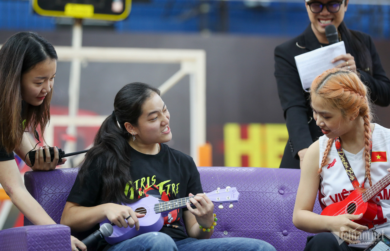 Thảo Vy còn không ngại ngần trình diễn khả năng chơi nhạc với cây đàn ukulele trước sự phấn khích của khán giả.