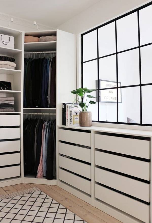 Góc nhà thường là nơi bạn thường hay lãng quên nhưng kỳ thực đây là chỗ để bài trí 1 chiếc tủ quần áo cực kỳ lý tưởng.