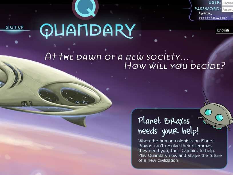 Các game chiến lược di chuyển chậm có thể thay đổi hành vi suy nghĩ của chúng ta, vì thế chúng ta có thể họ các quyết định khôn ngoan hơn, có đạo đức hơn trong đời sống thực. Đó là ý tưởng phía sau game Quandary, một trò chơi đưa những người dân thuộc địa lên hành tinh Braxos và đòi hỏi người chơi, hoặc đội trưởng, giúp giải quyết những tình huống khó xử giữa những người định cư.