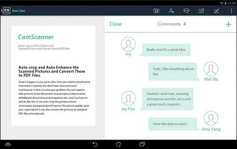 CamScanner có thể nhập các file PDF từ bộ nhớ thiết bị, nhưng bạn cũng có thể dùng camera điện thoại để chụp tài liệu và lưu nó vào máy như một file PDF. Điều này cực kỳ hữu ích khi bạn cần gửi qua email một văn bản. Sau khi tài liệu được chụp, bạn có thể chèn thêm chú thích.