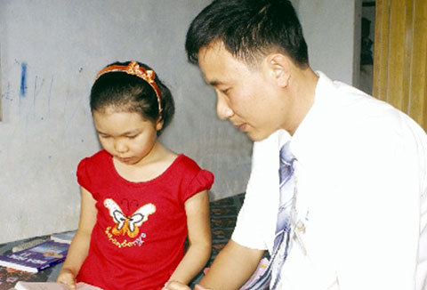 Thanh Ngọc và thầy giáo. Ảnh: Tiền Phong |