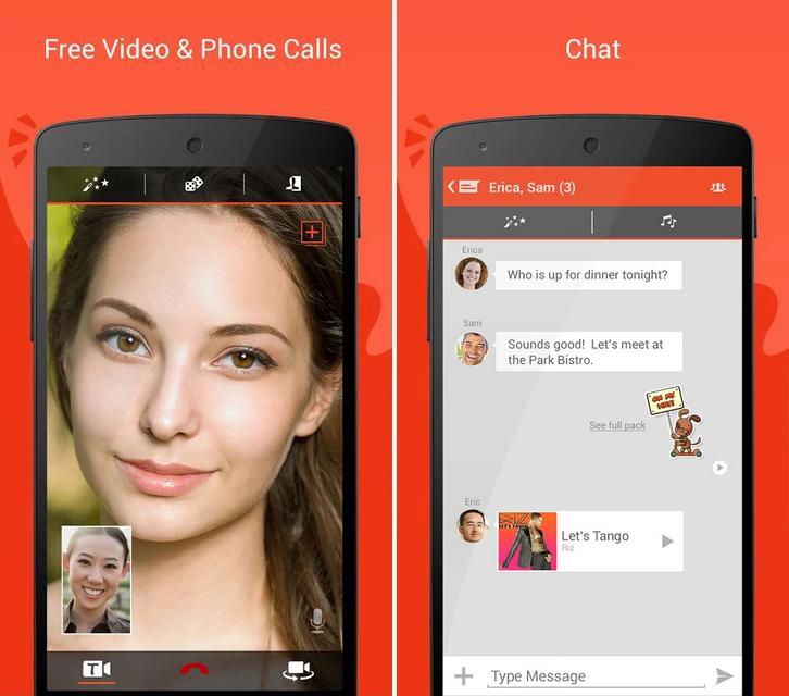 Tango là một trong những ứng dụng được tải về nhiều nhất trên Android. Ứng dụng hỗ trợ nhắn tin, chat theo nhóm và nhiều tính năng mạng xã hội như chia sẻ ảnh và cập nhật trạng thái, cũng như hỗ trợ gọi thoại và gọi video. Với Tango, bạn còn có thể chơi game với bạn bè, chia sẻ nhạc với người khác và xem thông tin từ nhiều kênh khác nhau về những chủ đề giải trí, thể thao, âm nhạc, thời trang…