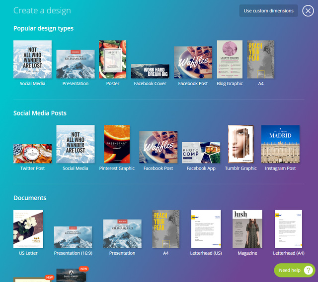 Ấn phẩm truyền thông đẹp mắt đang ngày càng trở nên quan trọng hơn trong marketing. Từ những hình ảnh minh họa bài viết cho đến những infographic nâng cao ý thức người dùng, những catalogue sản phẩm cho đến poster quảng bá đều cần tới bàn tay của những người biết thiết kế. Thế nhưng nếu bạn chưa có đủ vốn hay khả năng thuê được một designer riêng thì sao? Hiện nay có rất nhiều công cụ design miễn phí trên thị trường, thế nhưng tốt và dễ sử dụng hàng đầu phải kể đến Canva . Với kho hình ảnh mẫu phong phú cực nhiều poster, banner Facebook hay brochure, ảnh minh họa và cho phép người dùng sử dụng kiểu kéo thả chữ vào, Canva xứng đáng là người bạn thân của tất cả các marketer.