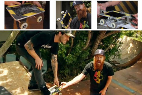 Người dẫn chương trình Built to Shred, Jeff King và vận động viên patin chuyên nghiệp Chad Knight đã quyết định biến chiếc iPad của họ thành ván trượt patin. Khi nào bạn thực sự muốn quăng chiếc iPad của mình vào sọt rác thì hãy thử cách này, vì nó gãy nhanh lắm!