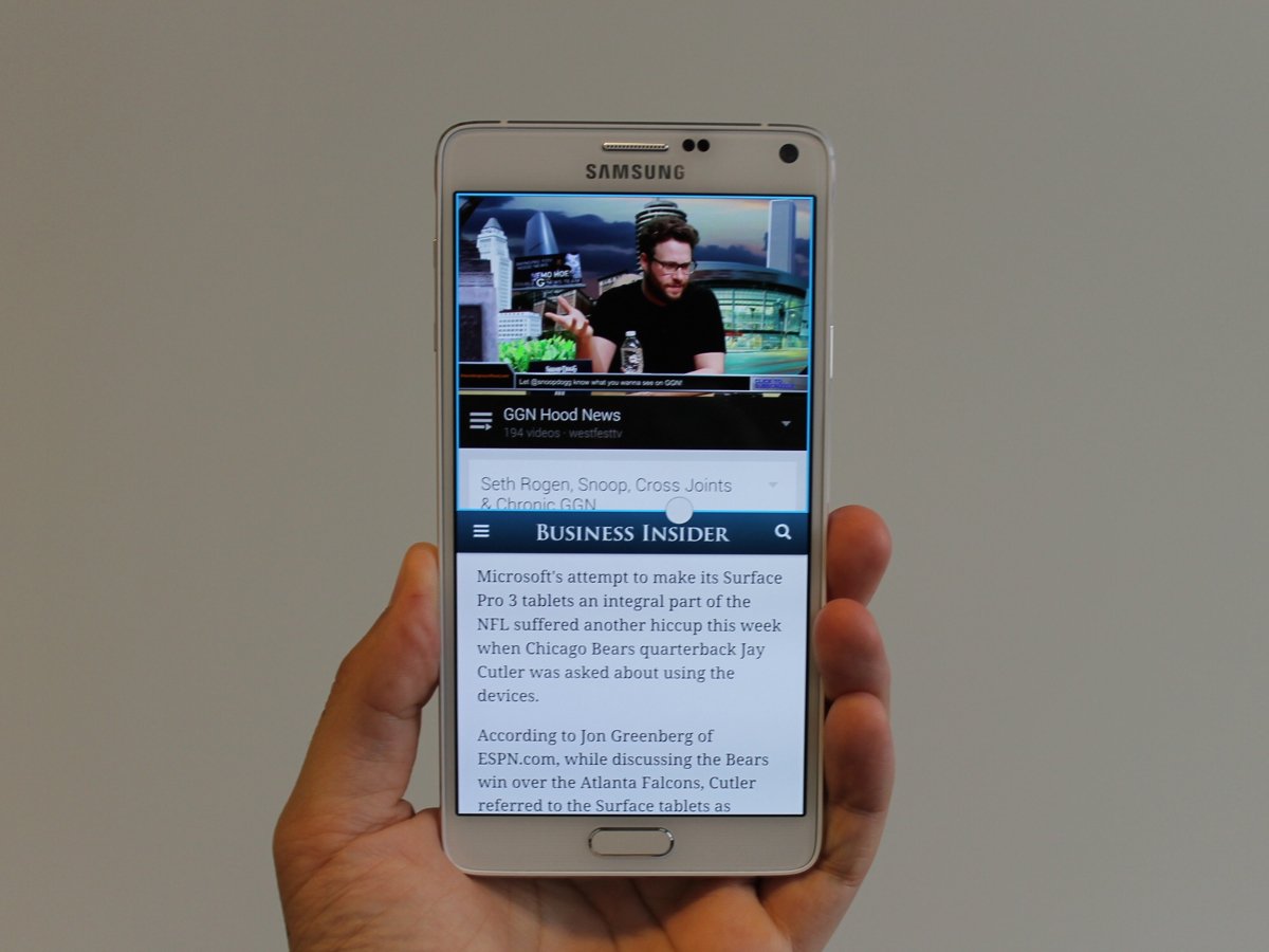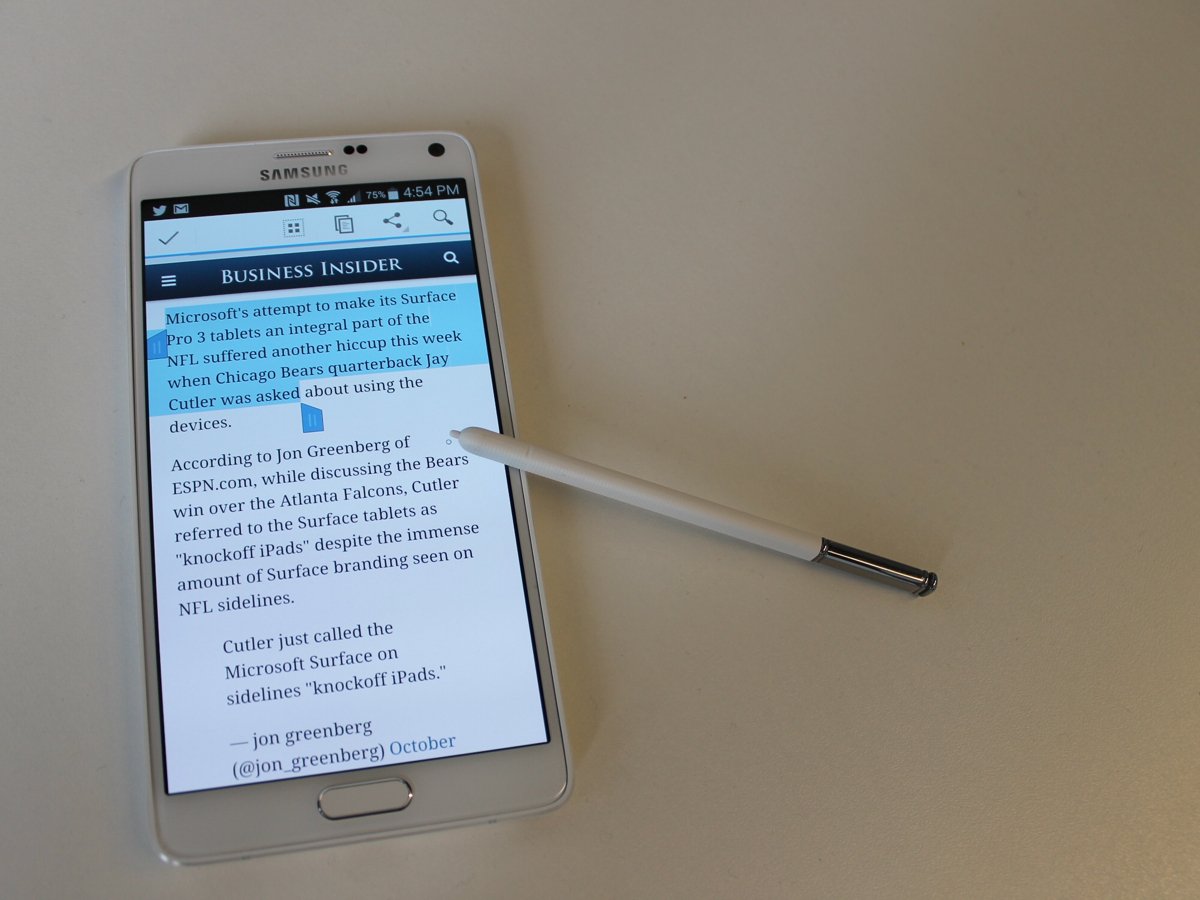 – Galaxy Note 4 là “át chủ bài” mới nhất của Samsung. Đây là smartphone tốt nhất Samsung từng sản xuất, vì thế được trang bị nhiều tính năng mà iPhone không có.