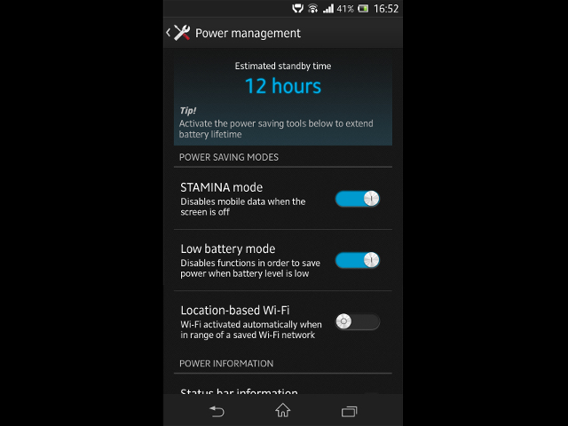 Hầu hết mọi smartphone hiện nay đều có tính năng tiết kiệm pin. Thậm chí, một vài trong số này như Stamina trên Sony Xperia còn cải thiện thời gian sử dụng pin mà không làm ảnh hưởng đến trực quan trên thiết bị. Số khác như Ultra saving trên Galaxy S5 lại đặc biệt hơn vì nó vô hiệu hóa mọi chức năng không quan trọng.