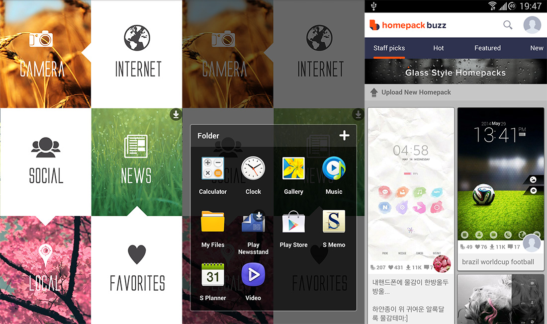 Có lẽ tính năng nổi bật nhất của Buzz Launcher là nó cho phép người dùng tải về các màn hình chủ được thiết lập hoàn chỉnh. Đó không chỉ là theme, mà còn là các bộ biểu tượng và hình nền đi kèm với cách bố trí riêng. Ngoài ra, mỗi màn hình chủ còn có diện mạo và phong cách hoàn toàn khác biệt. Người dùng cũng có thể tự tạo màn hình chủ theo ý thích và chia sẻ với người khác. Điều này khiến Buzz Launcher trở thành lựa chọn hàng đầu cho những người dùng Android muốn hoàn toàn thay đổi giao diện thiết bị.
