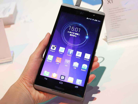 Hisense trưng bày phablet (tablet lai smartphone) X1 6.9 inch tại CES 2014 diễn ra ở Las Vegas đầu tháng 1/2014.