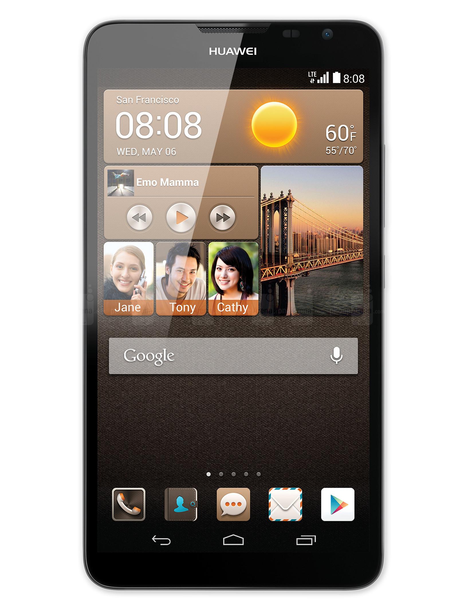 Huawei Ascend Mate 1 và 2 đều có màn hình 6.1 inch độ phân giải 720 x 1280 pixel. Đây là thiết bị lớn nhất trong danh mục sản phẩm của Huawei.