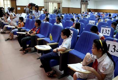 | Các thí sinh làm bài thi nghe |