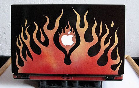 Modder Ted Warren đơn giản chỉ dùng giấy và sơn xịt tạo hình gọn lửa ấn tượng cho chiếc máy tính xách tay Apple của mình. Người hâm mộ các chương tình TV như American Chopper và Monster Garage sẽ rất thích nó.
