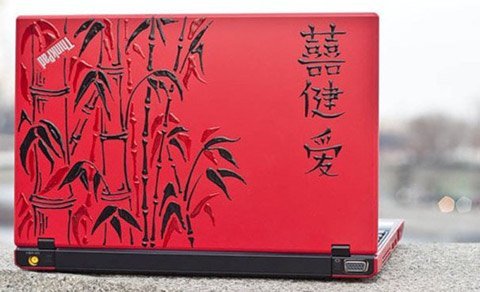 Modder (người "độ" thiết bị, sản phẩm) megaglowz đã sơn chiếc máy tính xách tay Dell vốn có màu đen nguyên bản sang màu đồng đỏ, rồi sau đó dùng công nghệ pinstriping (hay được dùng trong sơn ô-tô) để thêm vào các họa tiết trang trí độc đáo. Anh này đã kỳ công sơn phủ 5 lớp liền và độ thêm cả hệ thống loa tích hợp. Cuối cùng anh cài đặt bộ theme chủ đạo của máy tính hình ngọn lửa để tông-xuyệc-tông với máy.